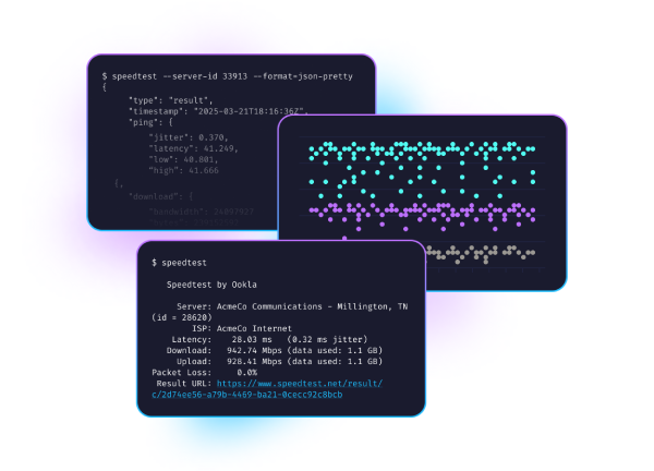 Speedtest CLI porta la tecnologia affidabile e la rete globale di server di Speedtest nella riga di comando.